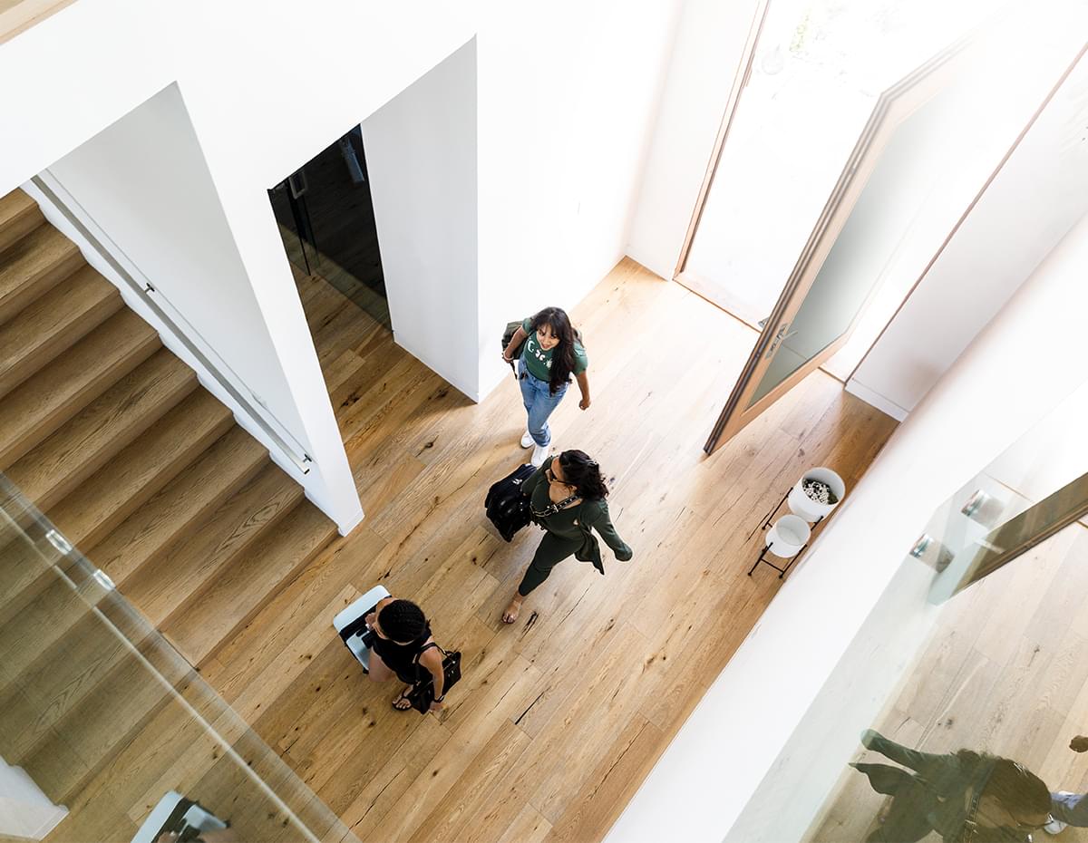 Upgrade the front entryway of your home with Lux. Our elegant Pivot Doors creates a larger, more welcoming entrance by rotating on hinges set away from the door frame side. This allows for a more expansive architectural door that features nearly effortless opening and closing action, thanks to built-in systems allowing it to remain open at a set angle, and then close softly behind you.